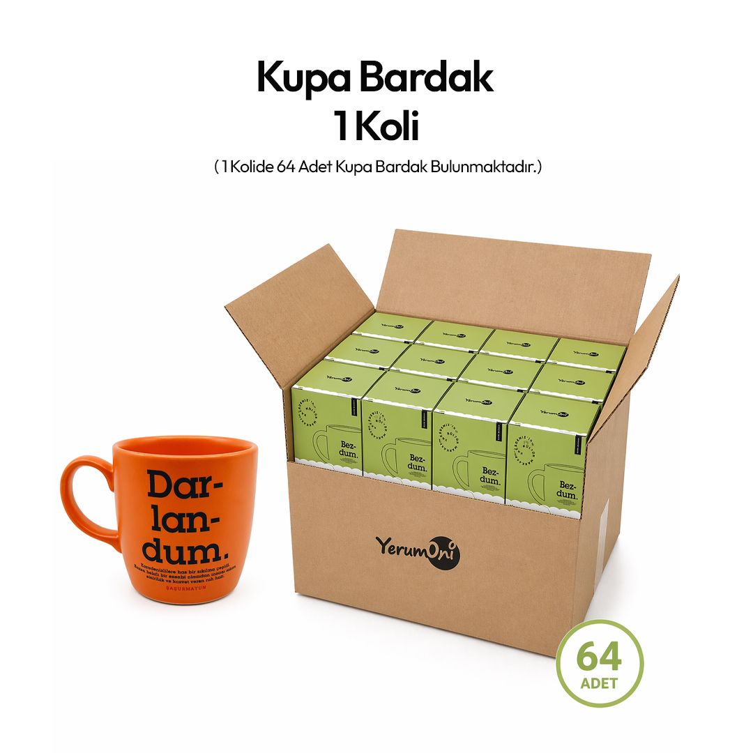 Koli İçinde 64 adet kupa vardır. Kupalar karışık yazılarda ve renklerdedir.Aceba içinde hangi yazılar var diye aklınızda bişey kalmasun merak etmeyun biz en çok satan ürünlerden karışım yaptuk. Siz rafınıza dizin satışın keyfını yaşayun:)