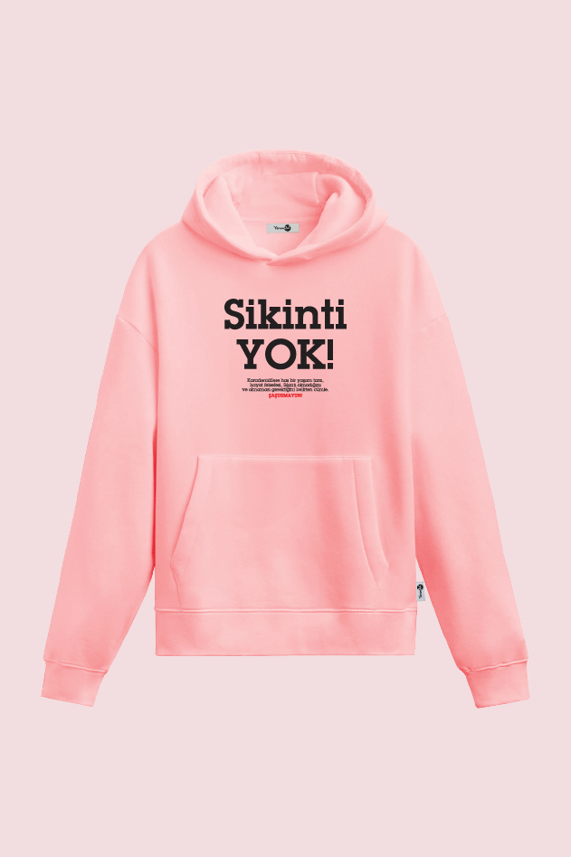 Sikinti Yok Kapüşonlu Sweatshirt Pembe